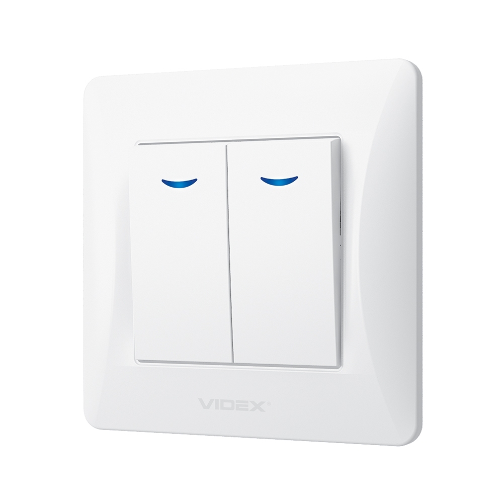 VIDEX BINERA Вимикач двоклавішний з підсвіткою білий